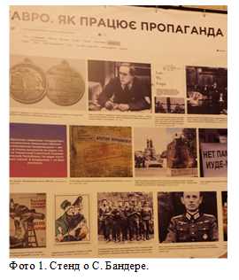 На этом стенде, посвящённом Бандере, есть, например, фотография отряда НКВД (Фото 1, середина, нижний ряд), орудовавшего под видом подразделения УПА или фото немецкого разведчика Р. Гелена (справа – нижний ряд), выдававшееся за фото Бандеры в немецкой форме. В целом, то, что стенды излагают на украинском языке, кардинально отличается от того, что, например, я учил в школе. Но от столь много мне уже пришлось отказаться, что замена бывшего «плохого» на сегодняшнее «хорошее» ещё в одном пункте не представляется неразрешимой проблемой. Что касается установления истины в исторических вопросах, хорошо бы, чтобы ею занялись объективные историки, а не эмоционально раскалённые любители, у которых энтузиазм заменяет знание. Но где ж они, эти объективные историки, как им заставить себя слушать, и как им самим найти моральные силы и твёрдость, позволяющие отойти от вчерашних стереотипов и современных проблем, диктуемых строительством нового государства и созданием новой нации?