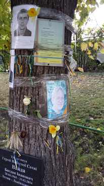 Гуляя по Киеву, мы неизменно сталкивались с дружелюбием, желанием помочь нам, как гостям города и страны. Однако при всём дружелюбии разговоры напоминали и о тринадцати тысячах погибших, и о том, кто начал все эти трагические события, где сидели снайперы, стрелявшие по демонстрантам Майдана, и кто они были. Да и сама улица памяти погибших, «Аллея героев небесной сотни», отходит прямо от Майдана, вверх до Институтской с её красивейшим зданием национального банка Украины. Вдоль аллеи стоят памятники, насколько поняли – всем погибшим. Памятники разные, включая и просто самоделки друзей (Фото 3).