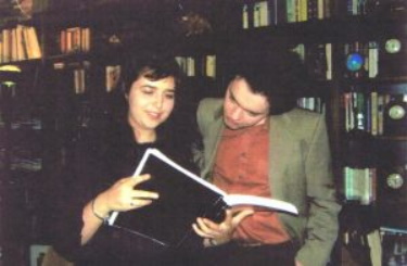Лера Ауэрбах и Женя Кисин рассматривают партитуру Лериного концерта для фортепиано с оркестром «Реквием тысячелетию», 2006