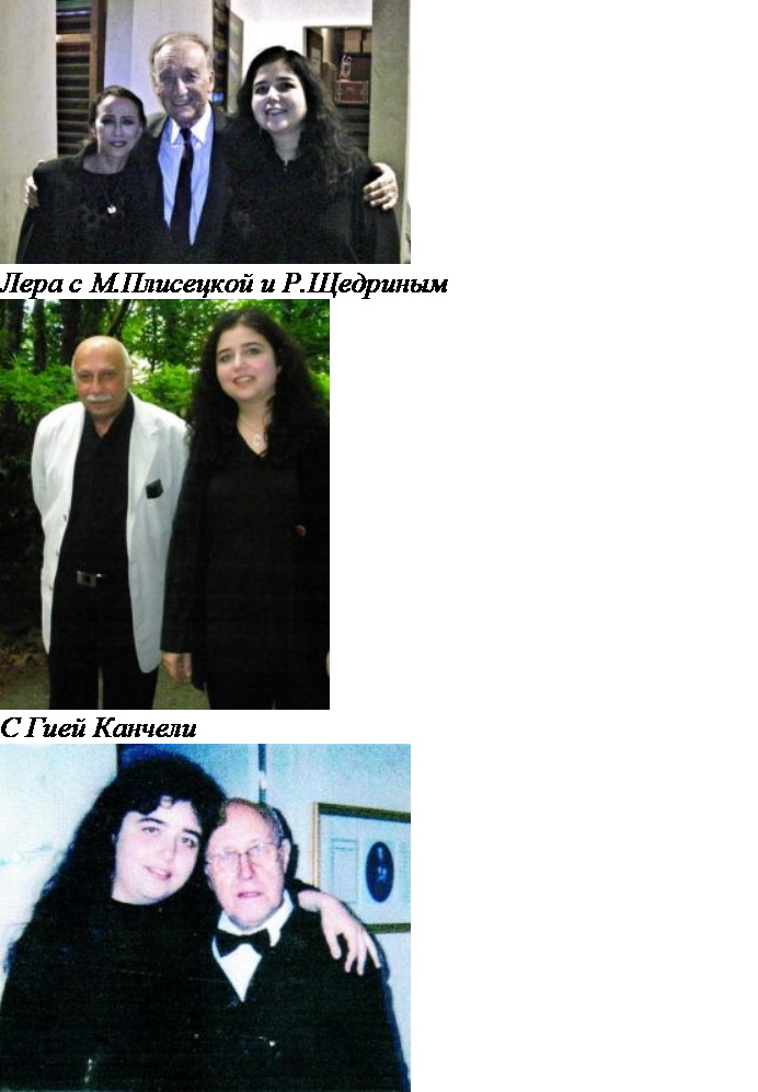 Специально оригинальную музыку Лера писала только к «Русалочке» и «Татьяне». Вспомнились, кстати, премьерные спектакли «Русалочки» в Копенгагене в 2005 году. Королева была на двух спектаклях подряд, а потом Лера была приглашена на прием в королевский дворец. Мы с Ларой в Дании не были, но об успехе могли судить по видеозаписи, овации превратились в четвертое действие. В остальных балетах использованы музыкальные фрагменты из произведений Леры. Это очень распространенная сейчас практика, когда балеты ставятся на ранее созданную музыку. Лера уже более трех месяцев в Европе, в основном, в Вене. Во Флориду возвращаться не может, т. к. дом требует ремонта (после ураганов).